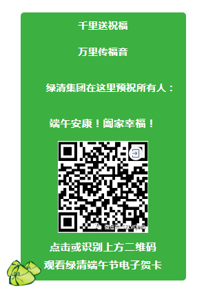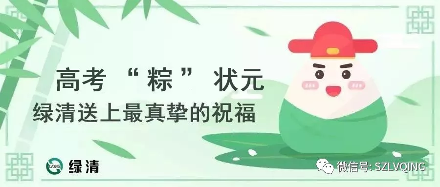 在端午佳節到來之際,綠清人感謝您過去半年中對我們服務工作的支持與理解,在此綠清全體員工祝福您和您的家人“合家團圓,身體安康”。同時也祝所有高考學子們“金榜題名”考上理想學府!