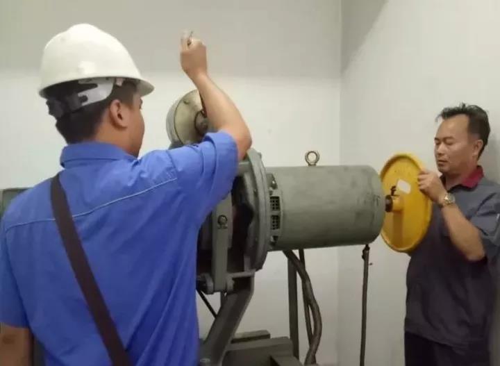 維保人員打開轎廂查看轎廂內(nèi)情況,發(fā)現(xiàn)停在2到3樓中間,需進行盤車平層工作