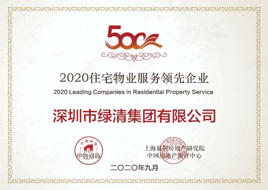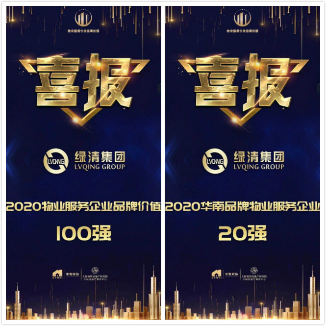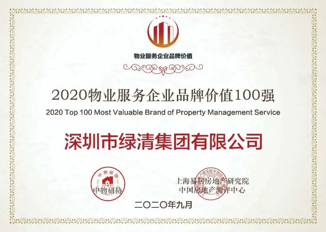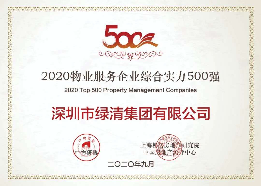 深圳市綠清集團有限公司憑借在管理規模、經營績效、服務質量、社會責任等方面的出色優勢,榮膺“2020物業服務企業綜合實力500強”、“2020華南品牌物業服務企業20強”、“2020物業服務企業品牌價值100強”、“2020住宅物業服務領先企業”等多項榮譽。