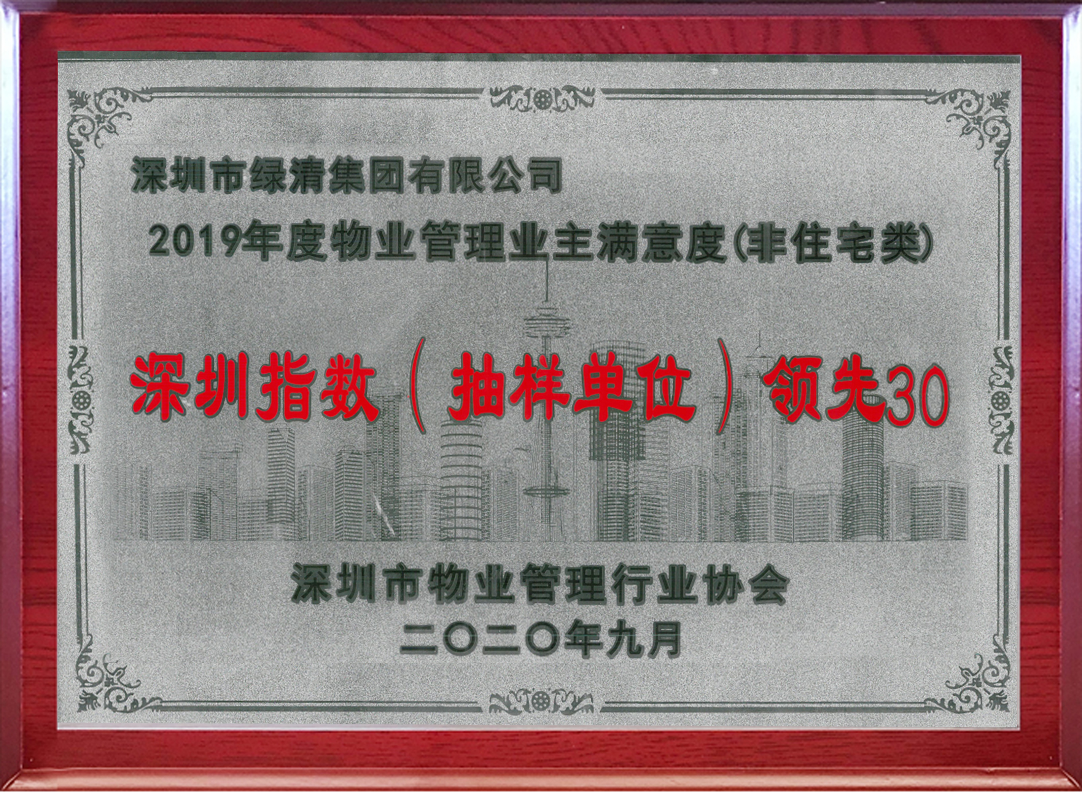 “2019年度物業管理業主滿意度深圳指數領先30企業”獎項