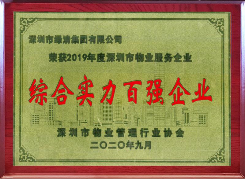 “2019年度深圳市物業服務企業綜合實力100強企業”獎項