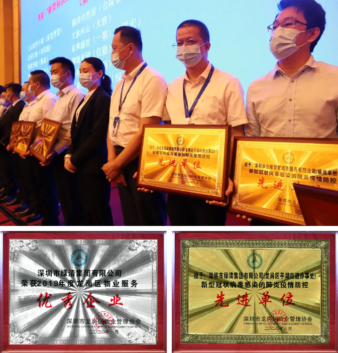 綠清集團在疫情期間表現出高度的社會責任感和使命感,致力打造物業服務新典范,榮膺“2019年度龍崗區優秀物業服務企業”,“新型冠狀病毒感染的肺炎疫情防控先進單位”雙項榮譽。綠清集團旗下物業服務項目榮獲“2020年度龍崗區物業管理優秀項目”;同時祝賀綠清集團優秀員工因疫情期間的出色表現榮獲“疫情防控先進個人”稱號。