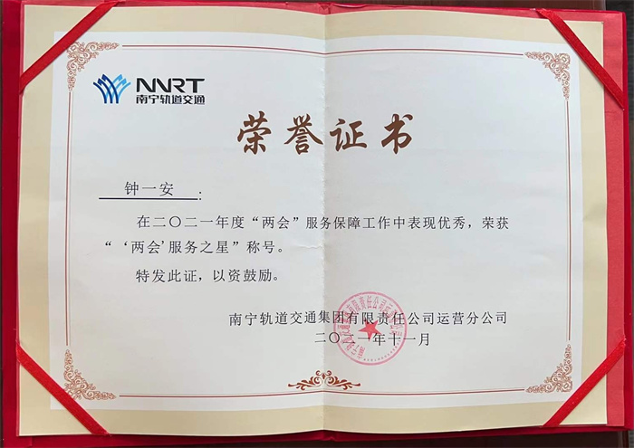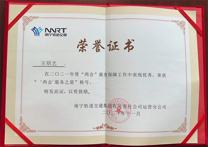 其中,4號線站務(wù)助理王紹藝、鐘一安在“兩會”保障工作中,積極了解政策,熱心解答來賓乘車疑問。遇進(jìn)站大客流的情況時,他們積極搬運(yùn)客控物質(zhì),迅速引流進(jìn)站人員,有效避免了站臺壓力過大。他們的工作獲得了南寧軌道交通的認(rèn)可,榮獲“‘兩會’服務(wù)之星”的稱號。