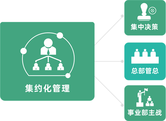 綠清堅定踐行集中決策、總部管總、事業(yè)部主戰(zhàn)的“集約化管理”,在“集約化管理”總原則指導下實行“五體五化”管理模式。