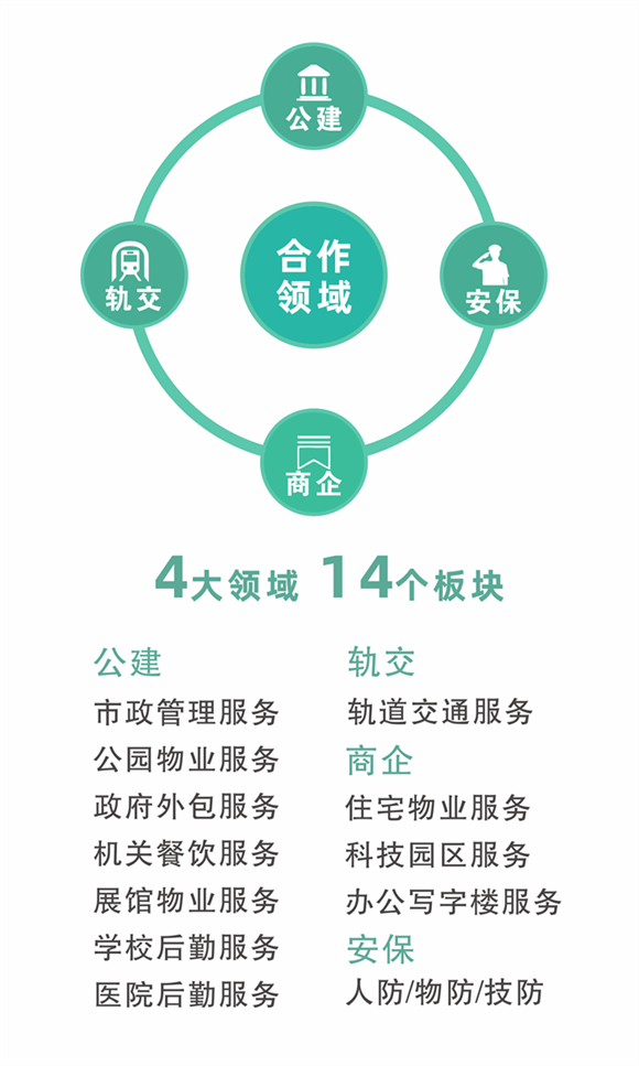 正是在集約化管理的科學引領下,綠清通過踐行多元融合的“合作共享計劃”,多年來,服務領域從住宅到寫字樓、從政府辦公場所到工業(yè)園區(qū)、從學校到醫(yī)院、從公園到展館、從軌道交通到城市服務,不斷延伸,涉及城市運營、產業(yè)發(fā)展、社區(qū)民生等諸多領域,實現了從服務城市到運營城市的跨越。