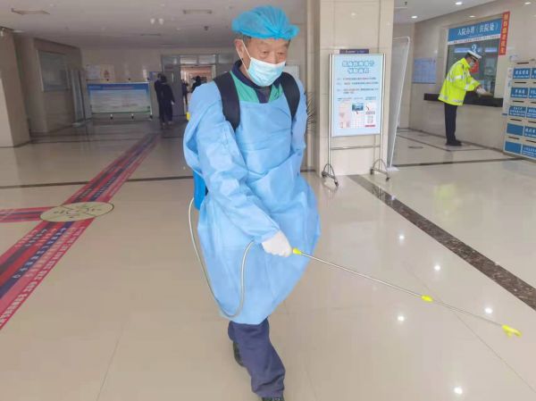 這位保潔師傅叫---尤慶安,是洛陽分公司在東方醫院后勤服務的一名保潔員。自新冠疫情防控開始,每天早晨傍晚尤慶安師傅都在院區的公共區域消毒。