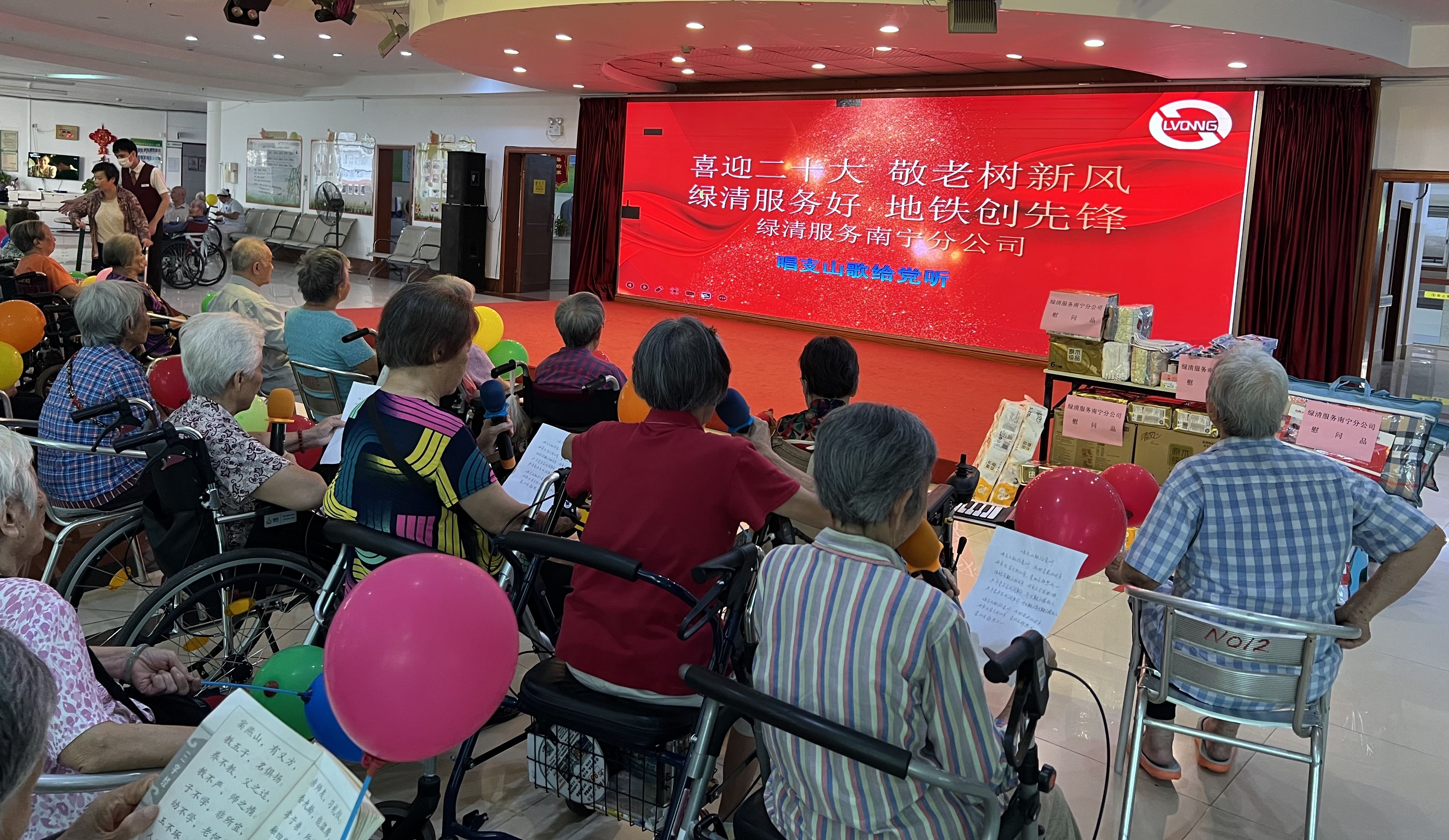 綠清人的到訪讓公寓里的老人們感到十分驚喜,受到他們的熱烈歡迎。在簡(jiǎn)樸的活動(dòng)儀式上,公司主持人在臺(tái)上為老人家們講解了綠清人在南寧地鐵服務(wù)中里的工作點(diǎn)滴,讓老人們感受到綠清人的用心、知心、耐心、熱心,有需要,就找我們!