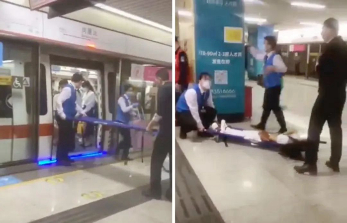 3月20日,深圳地鐵2號(hào)線(xiàn)崗廈北站,一位年輕女子突然暈倒在車(chē)廂內(nèi)。