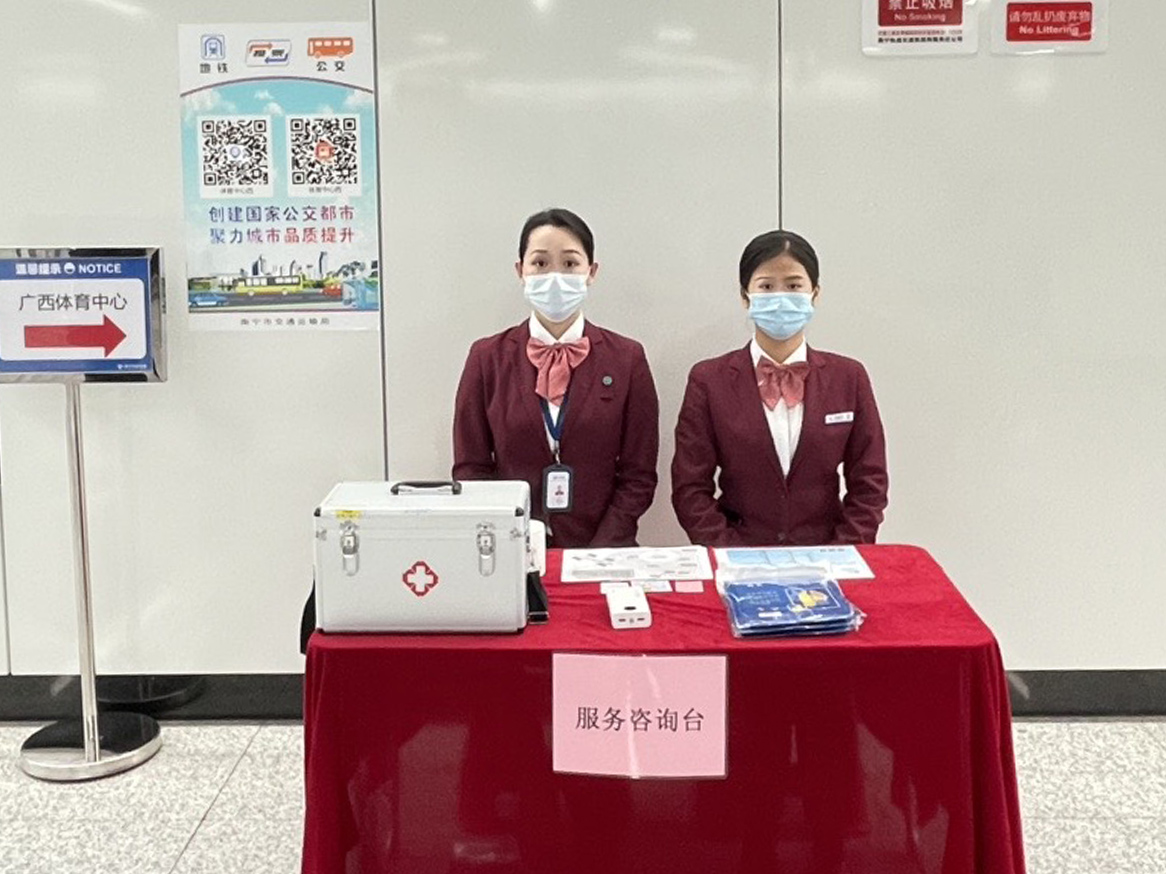 為了保障地鐵客流秩序,護(hù)衛(wèi)乘客人身安全,綠清服務(wù)南寧分公司項(xiàng)目負(fù)責(zé)人尚紅雪帶領(lǐng)30余名業(yè)務(wù)能力扎實(shí)的站務(wù)員與職能人員,駐扎在搬運(yùn)物資、擺放鐵馬的第一線,以“真誠(chéng)專業(yè),不負(fù)所托”的服務(wù)理念,以及一絲不茍、擔(dān)當(dāng)負(fù)責(zé)的工作態(tài)度,完美通過(guò)本次考驗(yàn)。