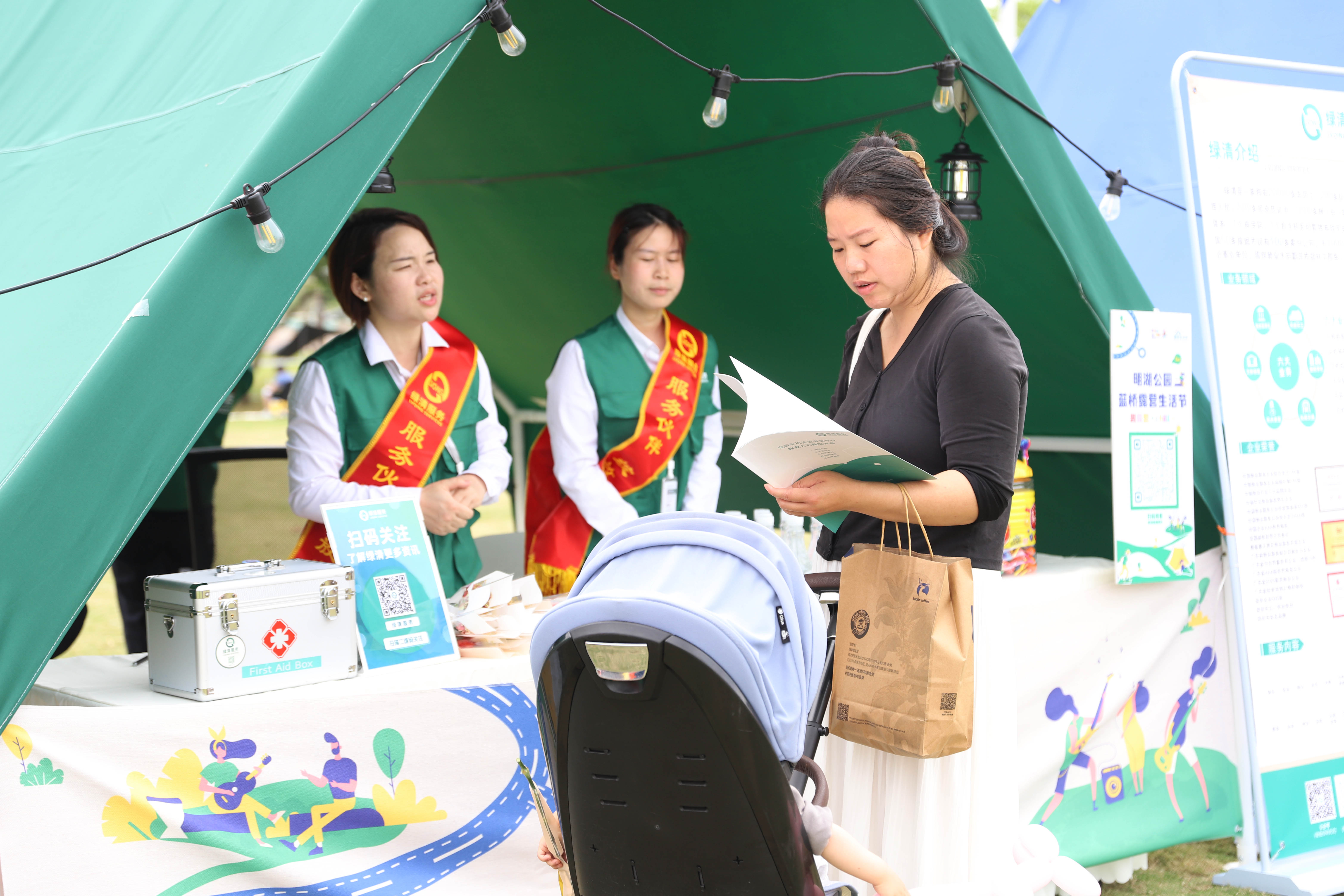 此外,在象征大自然的綠色帳篷內(nèi),綠清舉辦項目路演啟動儀式,清潔清爽的會場布置,具有露營特色的星星燈、月亮椅、戶外營車,以及免費為公園游客發(fā)放的鮮花、氣球、美食等,組合成一道靚麗的春日露營圖景,吸引大批市民前來打卡問詢,了解相關(guān)活動信息。
