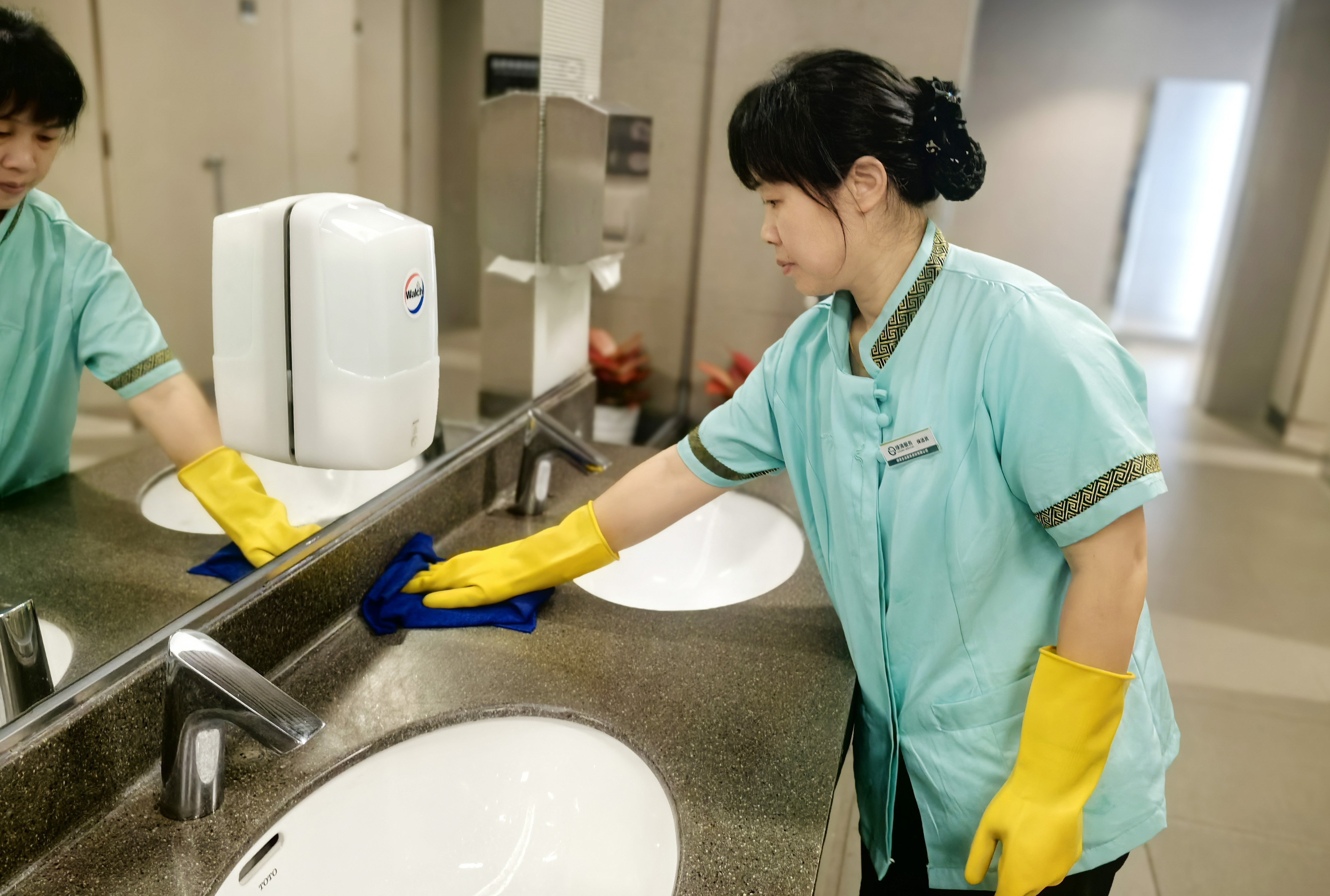 綠清服務深知衛生間是旅客使用頻率高、關注度也高的區域,因此投入了大量的人力與物力進行精細化管理。從地面到墻面,從洗手臺到馬桶,每一處都經過嚴格消毒與深度清潔,確保無異味、無水漬、無污漬。同時,公司還配備了充足的衛生用品,如紙巾、洗手液等,并設置了醒目的指示牌與溫馨提示,讓旅客在使用過程中感受到便捷與舒適。