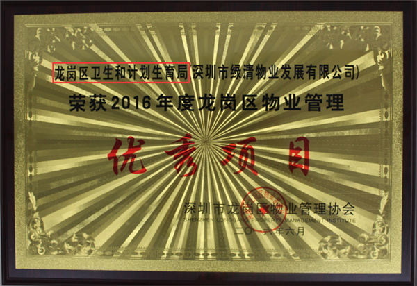 龍崗衛(wèi)生和計劃生育局項目獲得“龍崗區(qū)優(yōu)秀項目”榮譽