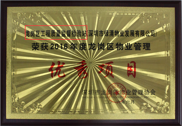 龍崗工程質(zhì)量檢查檢驗站項目獲得“龍崗區(qū)優(yōu)秀項目”榮譽