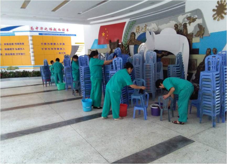 (通訊員:品質部謝愛華)為保證前海學校“六一”兒童節文藝節目順利開演,綠清公司項目主管劉陽貴同志帶領數名職工利用端午小長假時間,提前做好演出準備工作,對校區進行了全面的環境清潔維護,以及舞臺的布置。