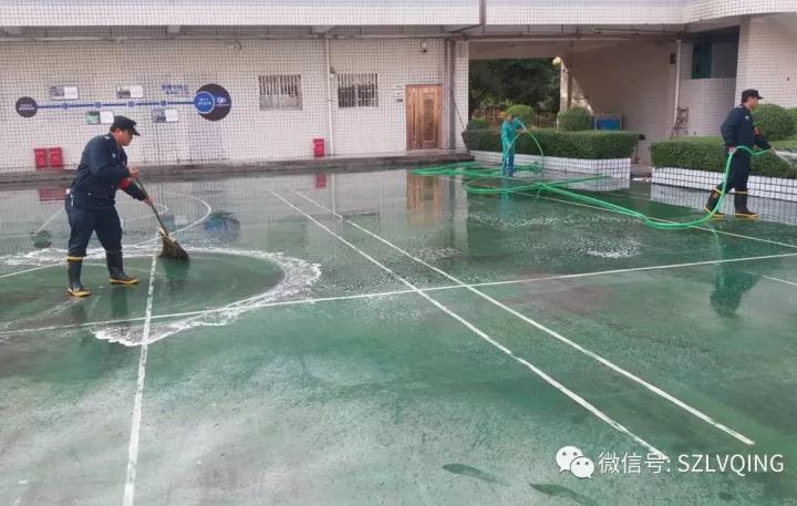 為助力龍崗二職迎評“省重”工作,項目10月底,就開始加班加點工作,周末基本無休,將全校里里外外的衛生都打掃了一遍,哪怕一個煙頭也不放過。有人手上磨出了血泡,但沒人埋怨。
