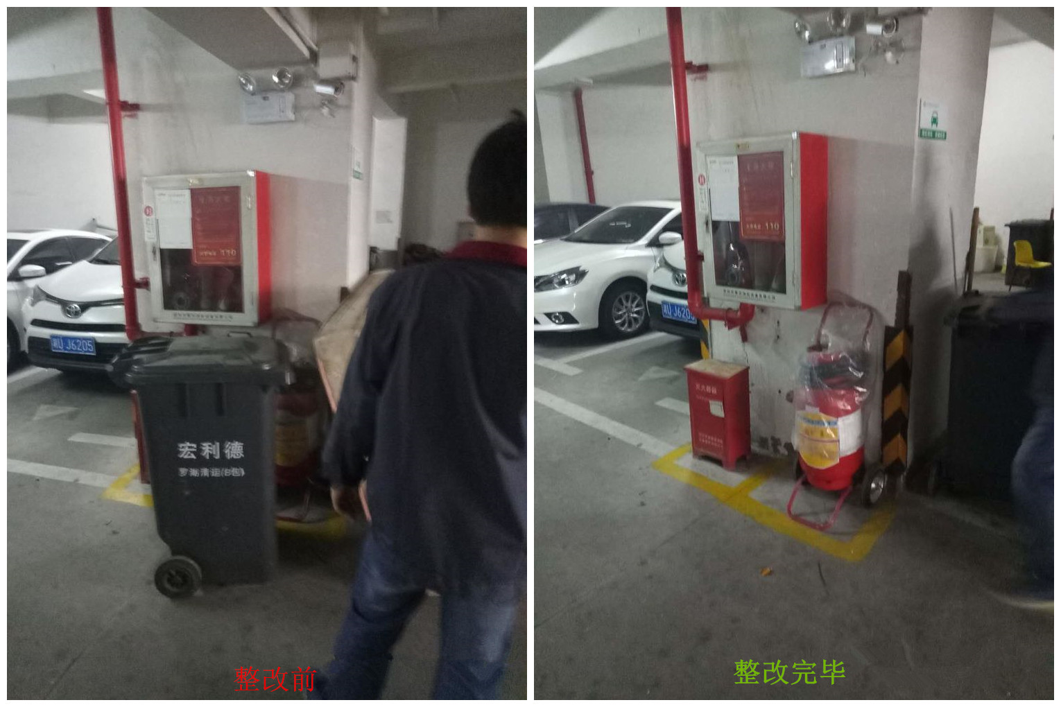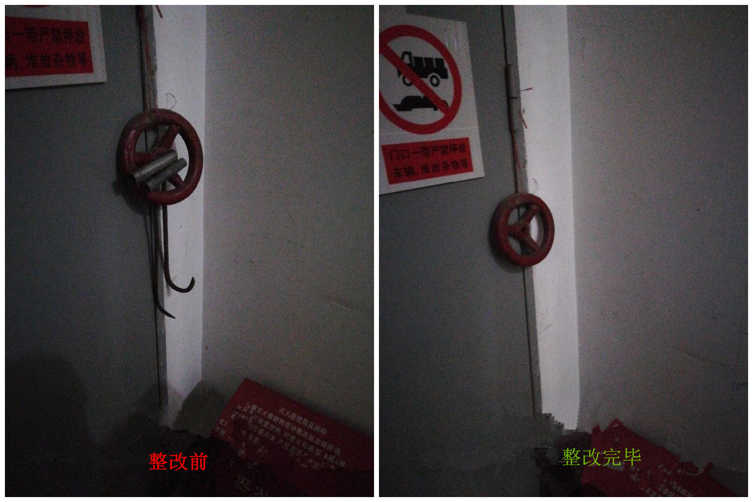 消防設備有雜物堵塞,已現場整改(左整改前,右整改后)