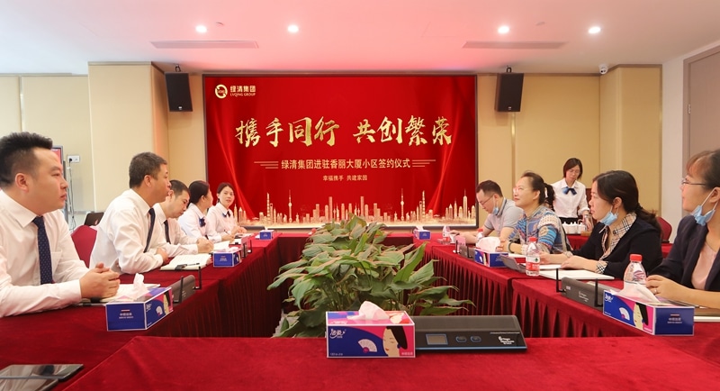 2020-11-19萬葉吟秋,團團翠深紅聚。芳桂月中來,應是染,仙禽頂砂勻注。金秋時節,豐盈如常。綠清集團開拓進取,精進不止,喜迎豐收。 近日,“綠清集團進駐香麗大廈簽約儀式”在綠清集團總部舉行,香麗大廈業委會主任陳瓊、綠清集團董事長谷...