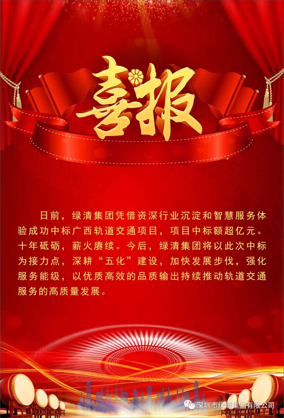 2020-08-01再傳捷訊,綠清集團成功中標 日前,綠清集團憑借資深行業沉淀和智慧服務體驗成功中標廣西軌道交通項目,項目中標額超億元。十年砥礪,薪火賡續。今后,綠清集團將以此次中標為接力點,深耕“五化”建設,加快發展步伐,強化服務能級...