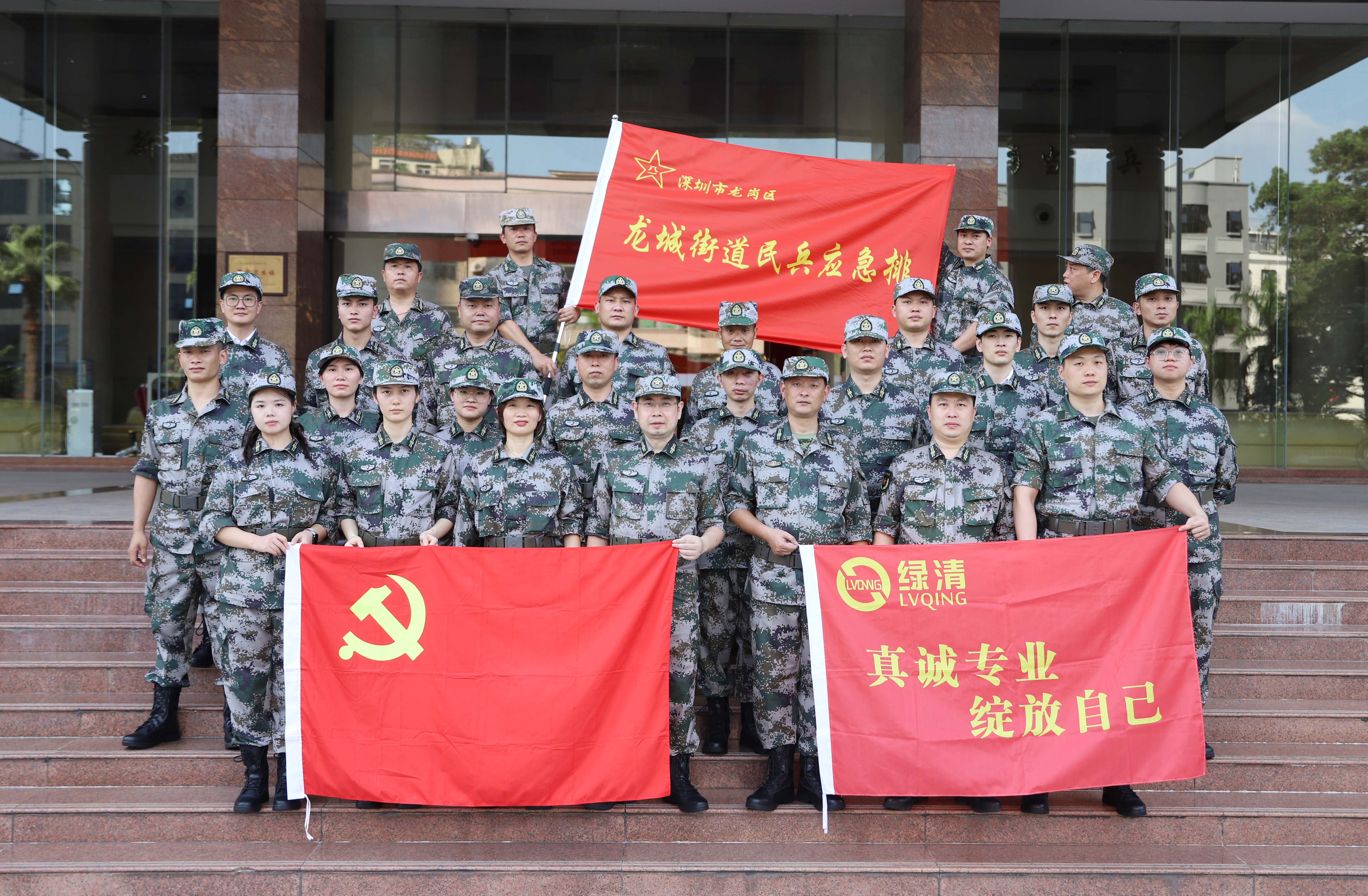 8月23日,深圳龍崗區龍城街道組織基干民兵進行拉動點驗暨民兵出入隊儀式,綠清生活服務深圳有限公司民兵應急排數十人接到命令參加。
