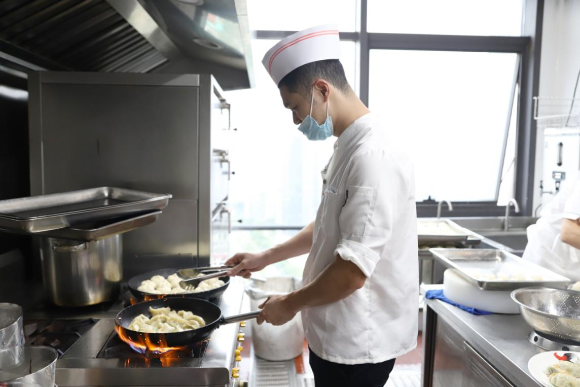 面點師傅現(xiàn)場教授調(diào)餃子餡、包餃子手法