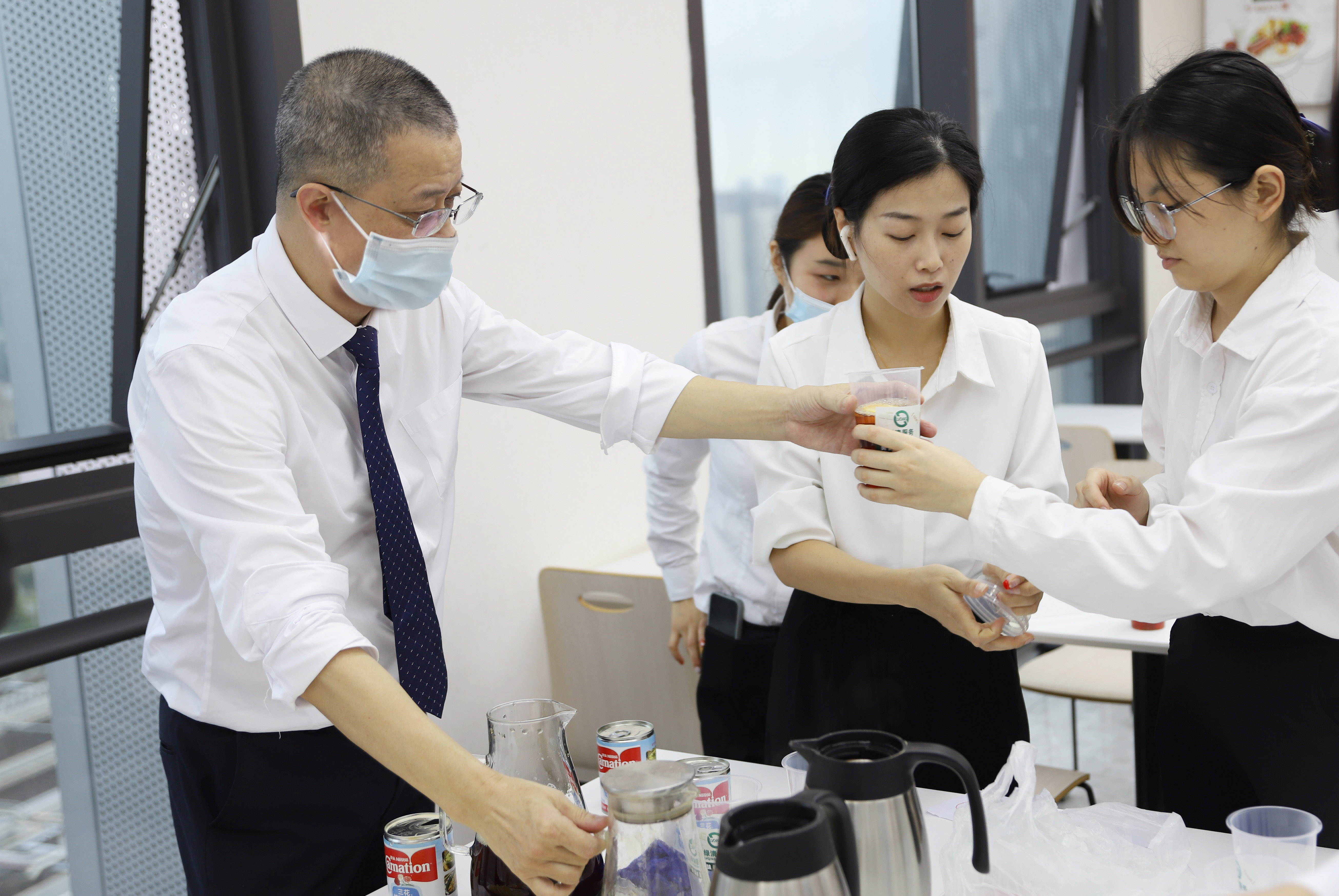餐飲服務部賴總現(xiàn)場教授做水果茶、奶茶
