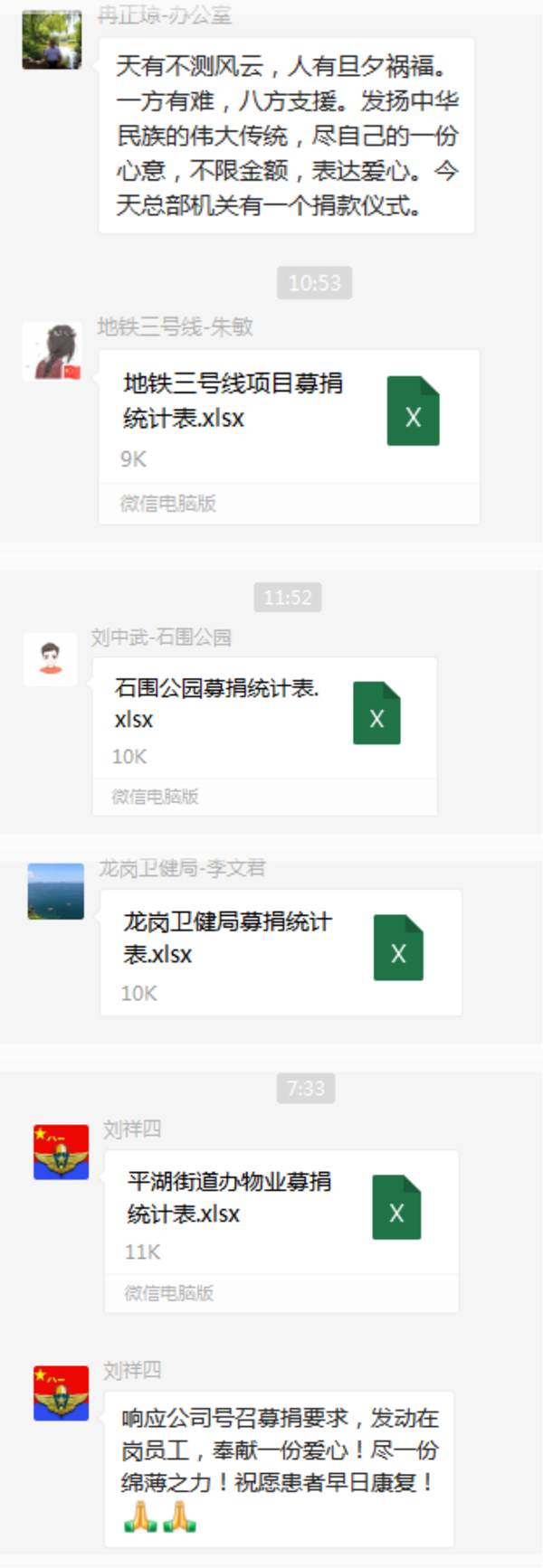 倡議一經發出,立即得到了全體職工的響應。公司領導、黨員干部率先垂范帶頭捐款。總公司及各分公司、項目員工,無論是朝夕相處的,還是素未謀面的,都紛紛伸出援助之手,或現場捐款,或線上捐款,盡一份力量。
