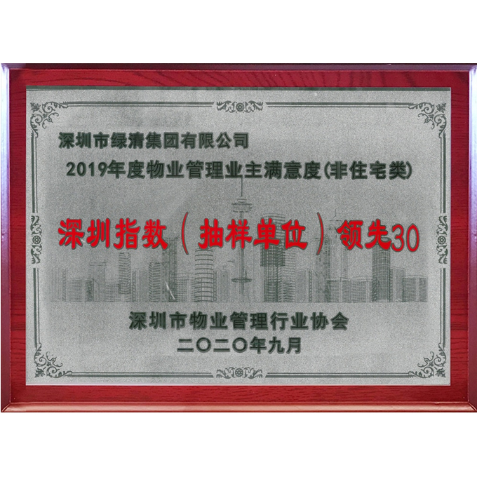 2019年度物業管理業主滿意度深圳指數領先30企業