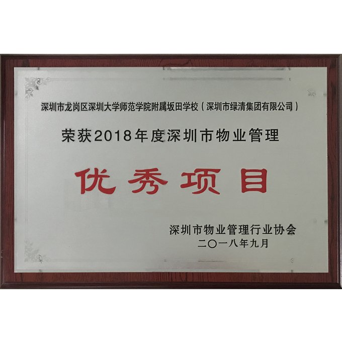 2018年度深圳大學(xué)師范學(xué)院附屬坂田學(xué)校深圳市物業(yè)管理優(yōu)秀項目