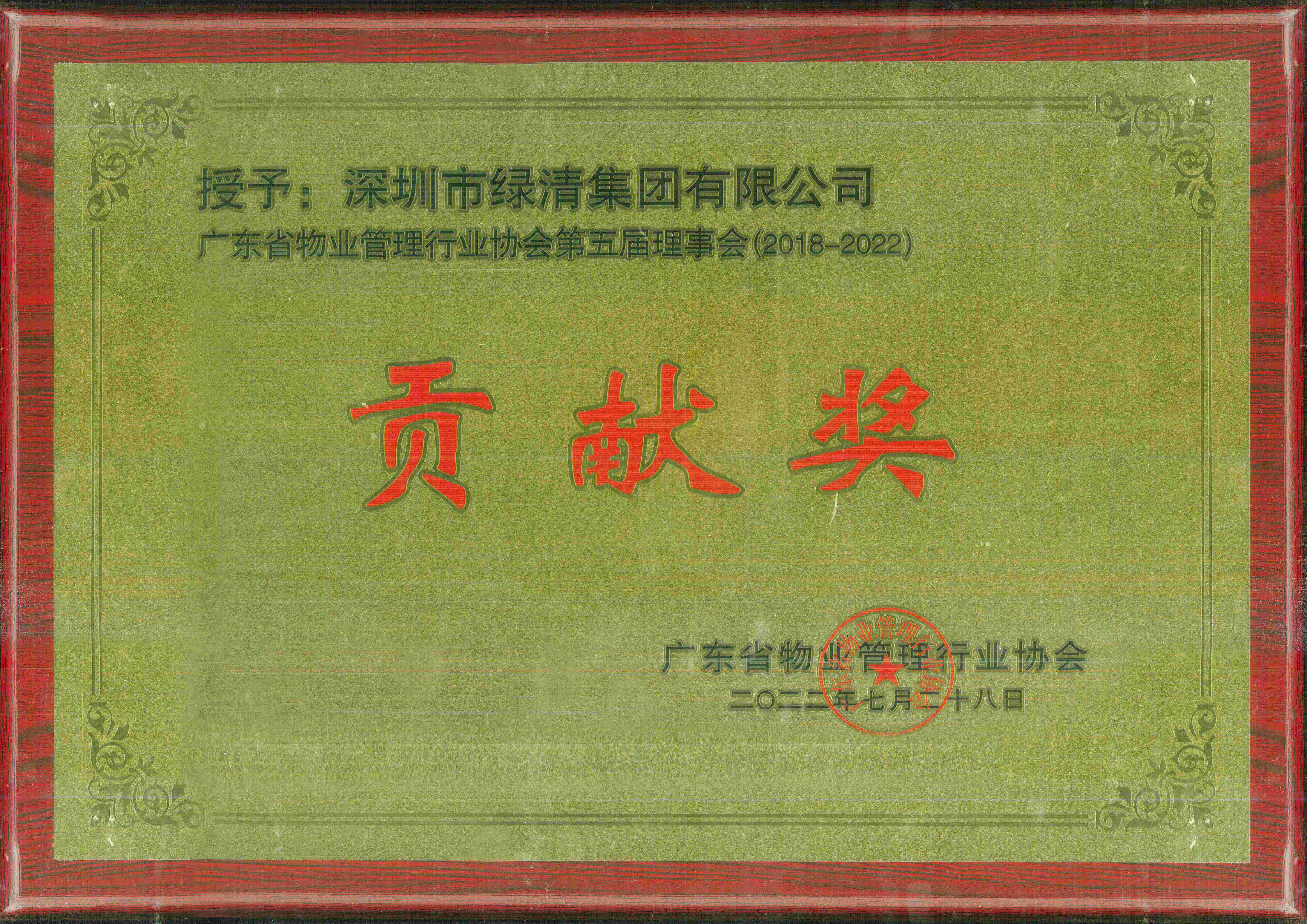 廣東省物業管理行業協會貢獻獎