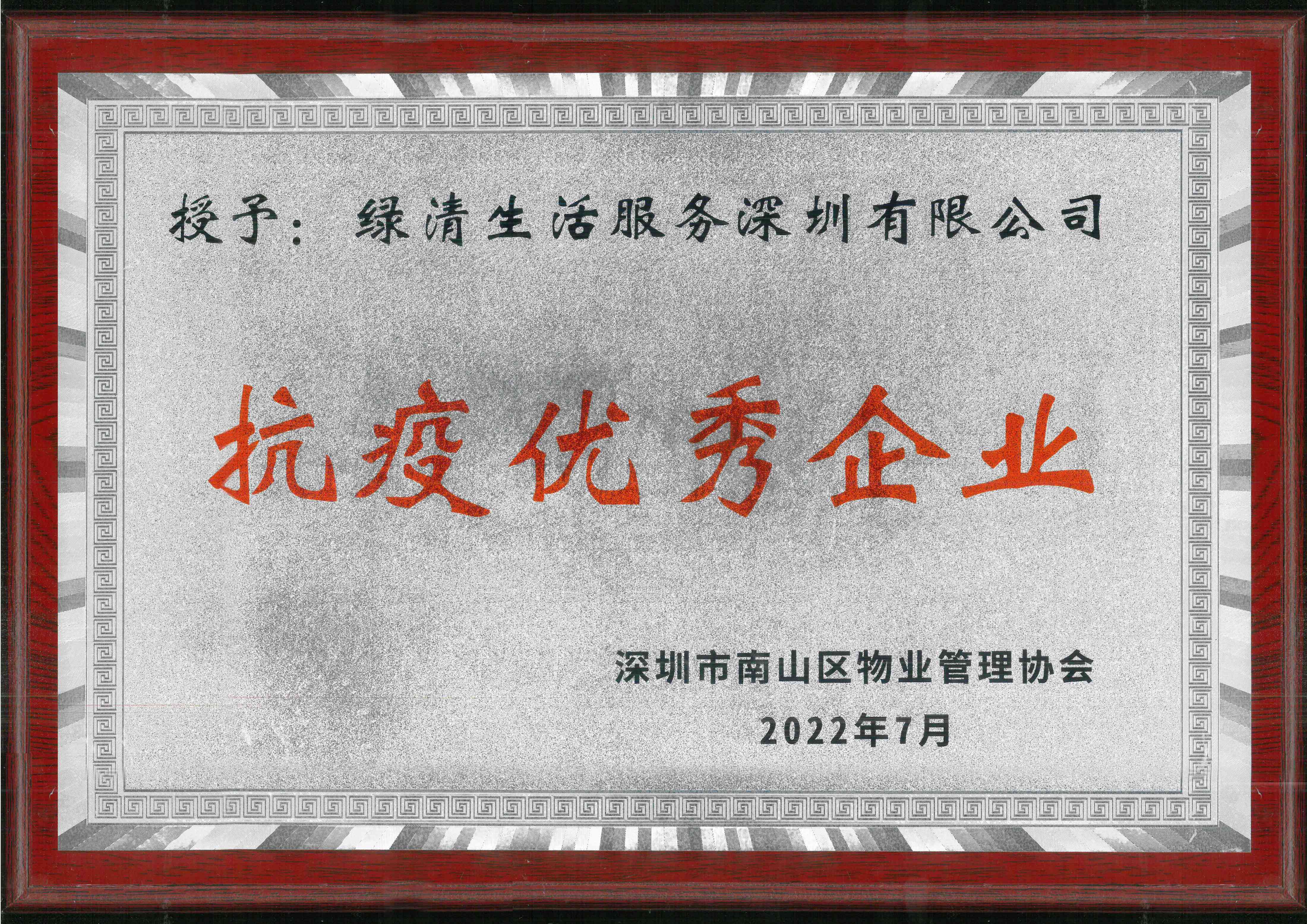 深圳市南山區物業管理協會抗疫優秀企業