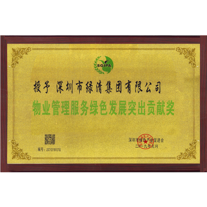 2019年度物業(yè)管理服務(wù)綠色發(fā)展突出貢獻(xiàn)獎(jiǎng)