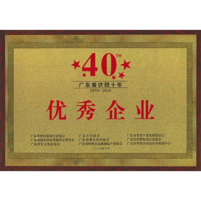 2018年度廣東餐飲40年優(yōu)秀企業(yè)